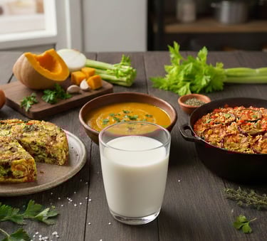 ahuyama o zapallo, una torta de verduras y de sovre mesa leche de
